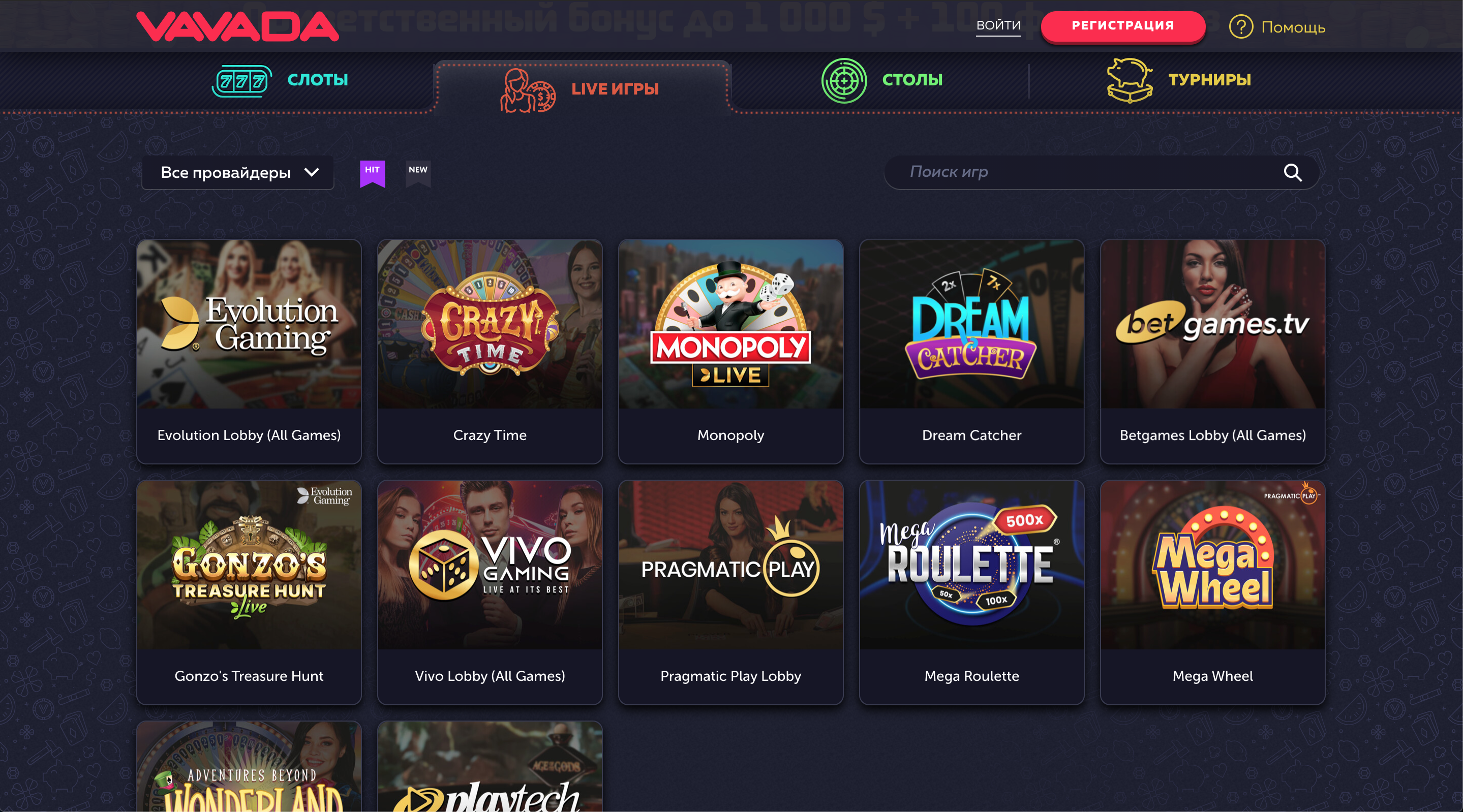 Vavada казино веб-сайты ең танымал ойындар мен слоттарды ұсынады. Сіз өз қалауыңыз бойынша кез келген ойынды таңдай аласыз. Слоттар әртүрлі сюжеттер, бонустық раундтар және үлкен жеңіске жету мүмкіндігін ұсынады.Вавада казиносындағы ставкалар мен ұтыстар.